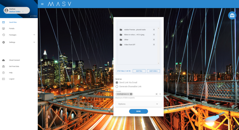 MASV is a browser-based software offering videographers and creators a fast way to transfer time-critical files. It offers a pay-as-you-go model with a cost of $0.25 per downloaded GB. There are no subscription fees or file size and bandwidth restrictions. The company is also the only file transfer service with Cloud Connect. Its integration with frame.io means you don’t “need to spend time downloading files only to reupload somewhere else.” You can connect your MASV Portal to frame.io and directly receive the files in your frame.io account.