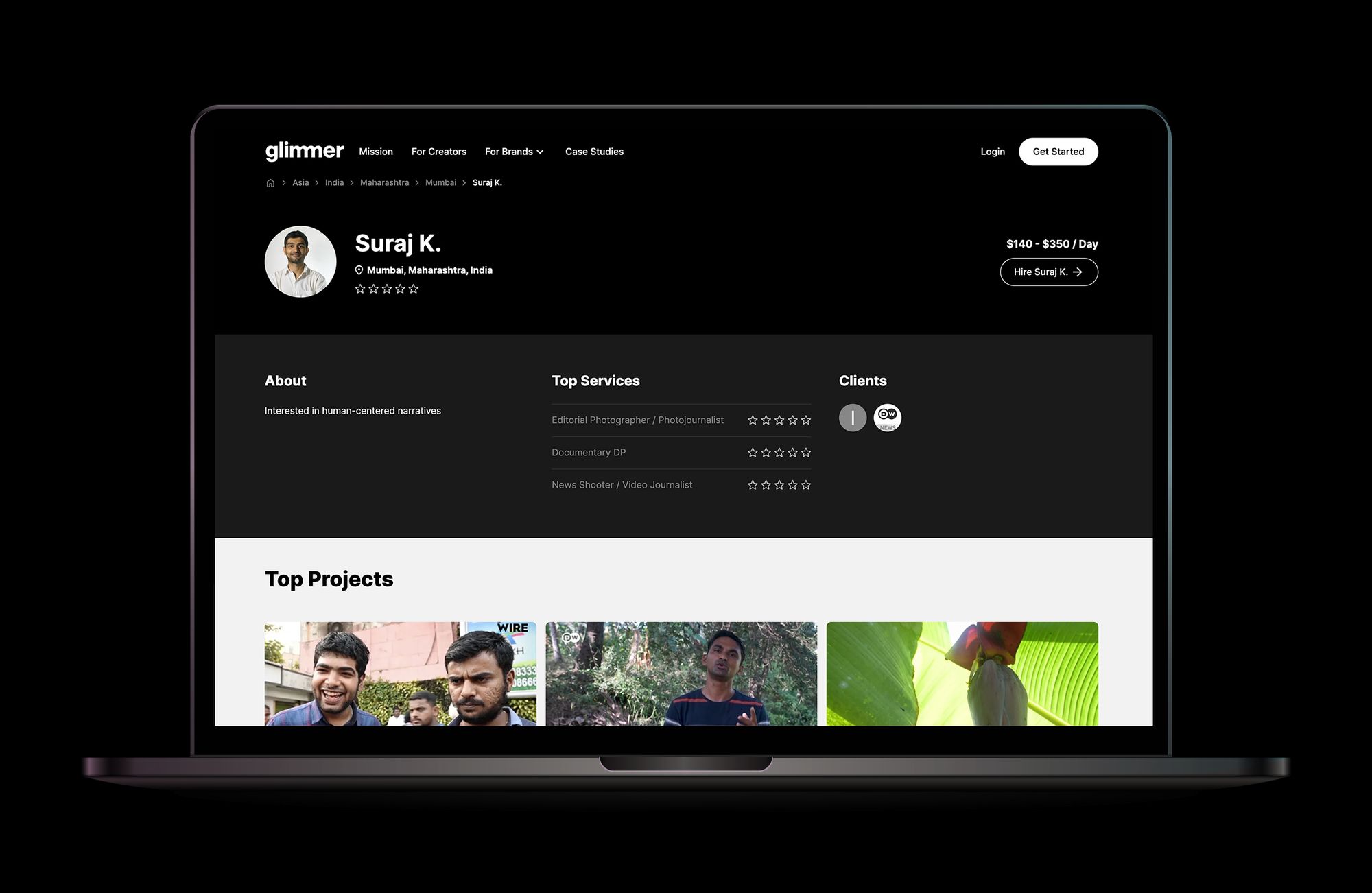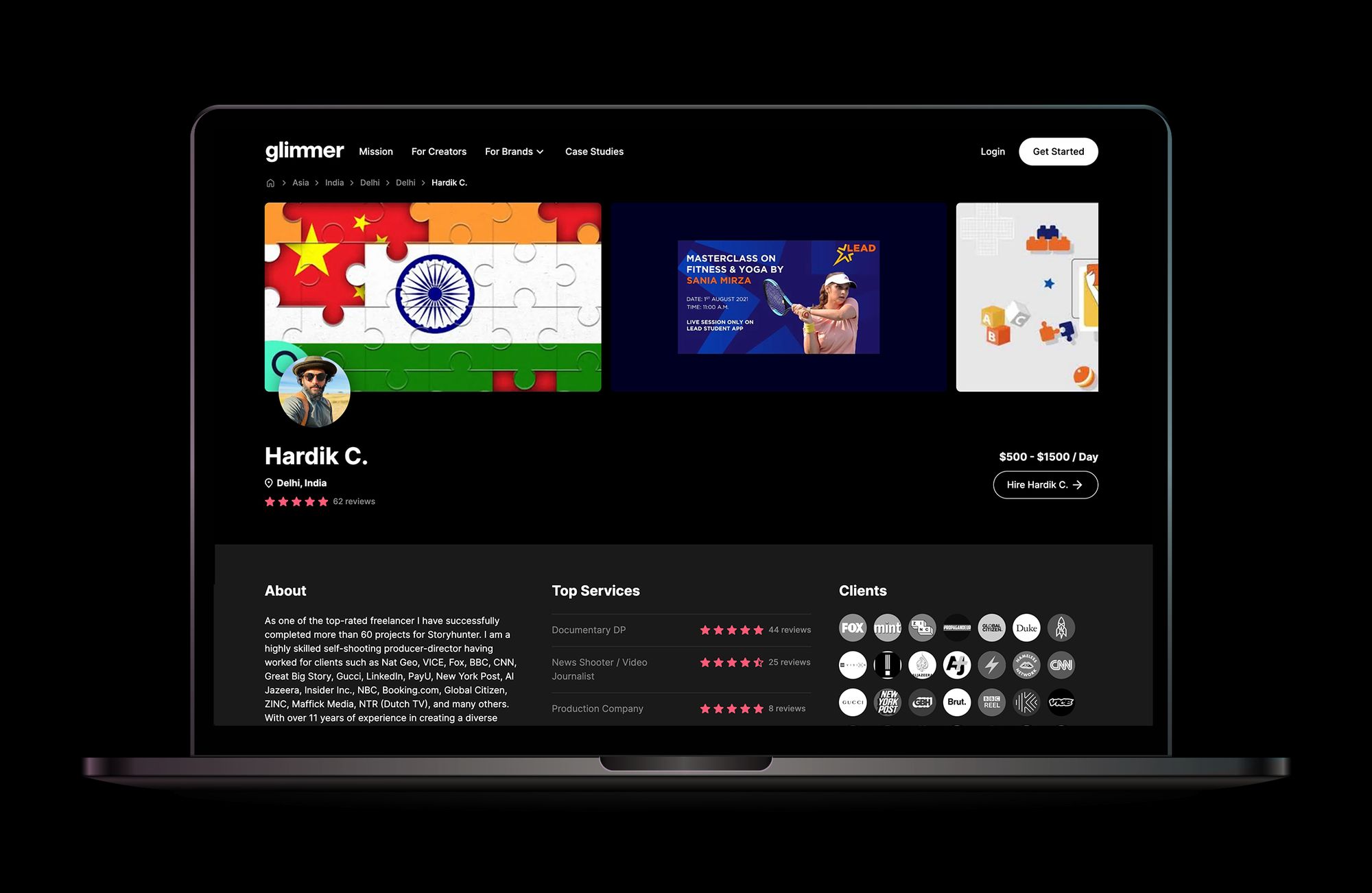 Hardik Contractor is one of Glimmer’s superstar freelancers - he has completed more than 60 projects on the platform for clients such as National Geographic, Gucci, LinkedIn, and Booking.com.