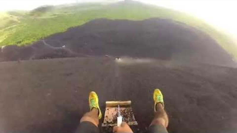 ash boarding on the slopes of the Cerro Negro Volcano in Leon, Nicaragua.