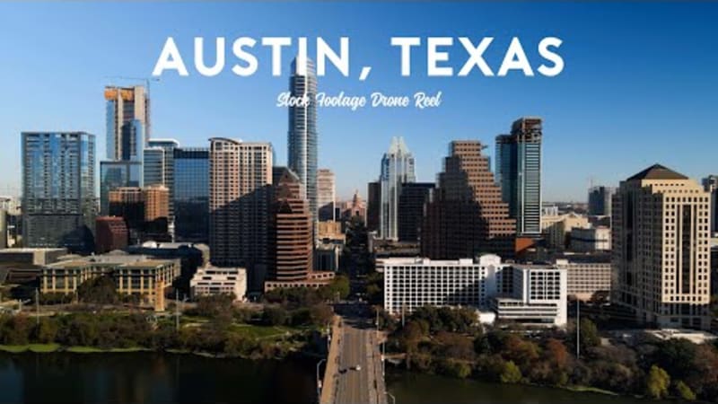 Austin, Texas stock drone footage shot in 4K UHD of the city skyline and downtown, Zilker Park, the University of Texas Campus, and more. Clear blue skies, fall color trees, and beautiful pink sunsets, as well as night footage of the skyline that you can license directly from us and use as b-roll or transitions for your own video work needs.